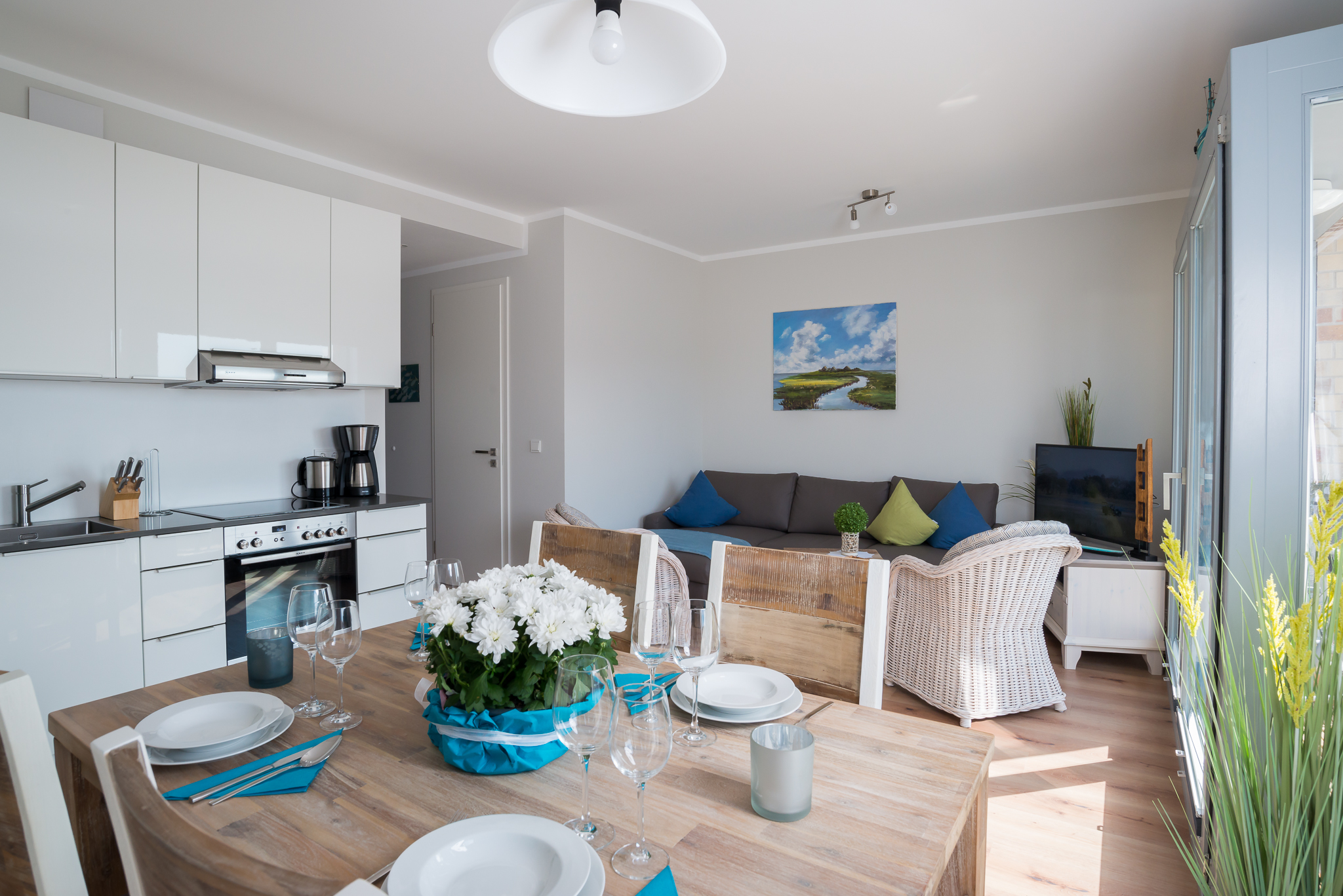 Zwar gehört zu unserer Wohnung kein Deluxe-Whirlpool oder gar ein reich gefüllter Weinkeller, aber dafür gibt es einen wunderbaren Sonnenbalkon mit Blickauf den Binnensee Heiligenhafens, einen Kamin und vieles mehr. Eines jedoch ist mit keinem geforderten Kriterium beschreibbar: die Lage, die man selbst erleben sollte.